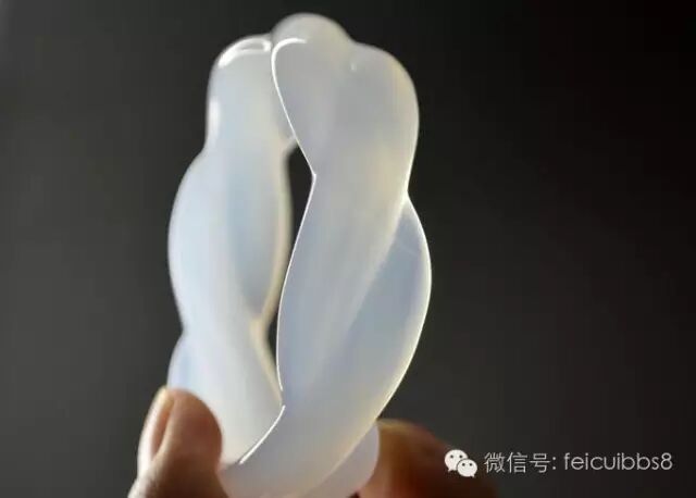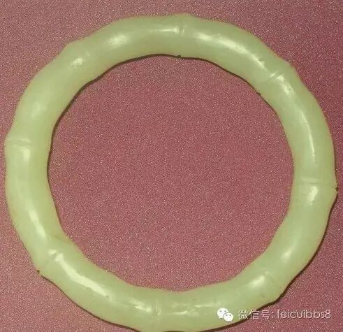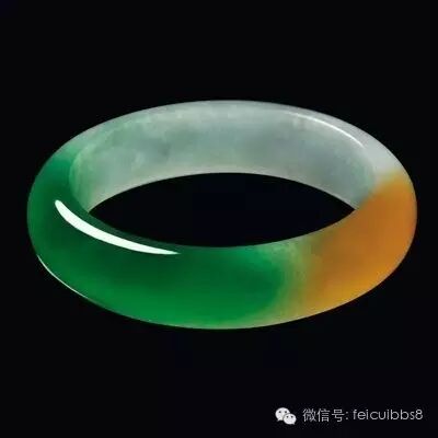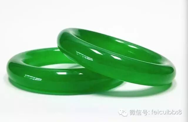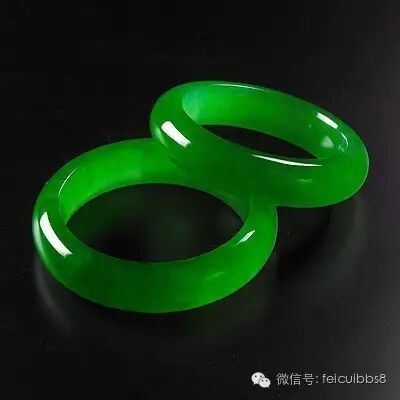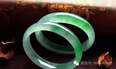 8.鸳鸯镯:不是指镯子上雕刻一对鸳鸯的概念,而是指镯子成对。成对是指从一个玉胎里开出来的两块料,或者颜色纹路极为相似;或者色段正好互补(比如一个是满春带绿,一个是满绿带春);或者颜色正好是两个极端(一翡一翠,或者一阴一阳,就是绿偏蓝和绿偏黄);等等,于是巧接天工做成一对镯子。这种镯子可以上工也可以不上工,做成什么式样也不拘泥,因为本身就是绝品了,但是是否是一个玉胎里出来的这一点几乎无法鉴定,所以遇到这样的玉料,都是有声望的匠人手上做,一求保险,二来借工者以证明不是作假。