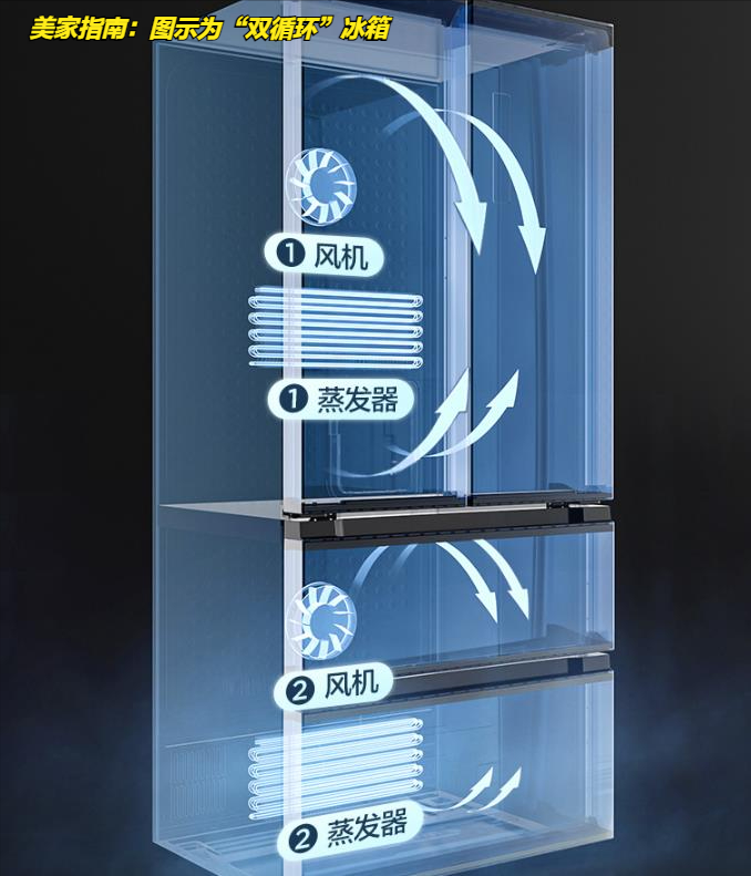 以前的冰箱,基本都是单循环,也就是冷冻室和冷藏室,共用一个压缩机和风机。但是这种单循环的模式很容易串味,而且制冷也不均匀。所以后来流行起了双循环,甚至是三循环。