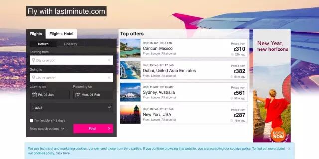 Lastminute,紧急关头。这个网站适合于一些到最后还没有定好机票酒店的拖延症晚期患者们。虽然说走就走的旅行很潇洒,但是提前做好准备才是王道啊。