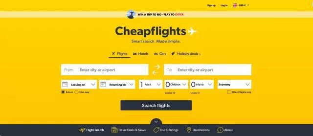 顾名思义cheapflights,通常用于美洲和欧洲的廉价航空机票比价。