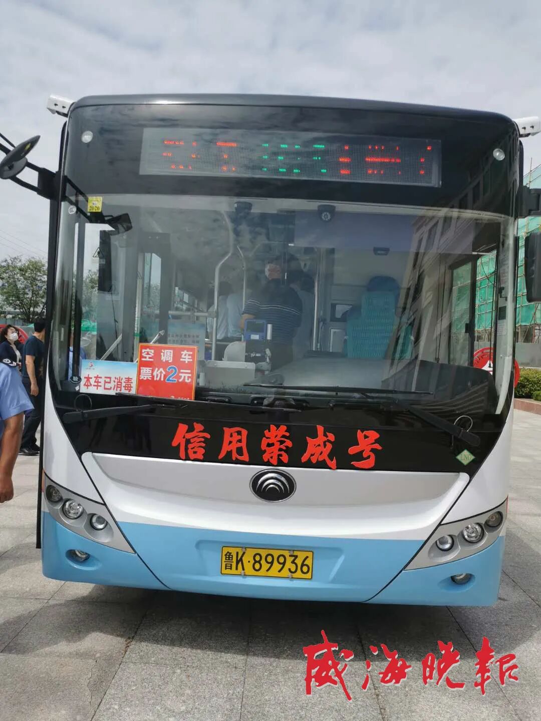 通过设置信用荣成号公交车,在市民中间进行信用宣传。资料片