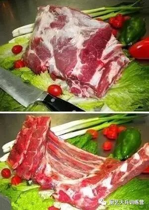 前排:带颈前排,带颈前排跟上面的排骨是基本一样的,区别在于这个排骨保留了颈骨,大家在市面上面应该会经常见到这样的排骨最佳用处:煲汤、红烧等带颈前排