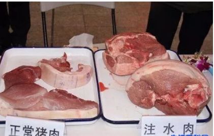 注水或冰冻时间过久的猪肉,其中的猪肉纤维被破坏,导致弹性丧失。另外,这类猪肉中的脂肪也会逐渐地分解、流失,口感下降。
