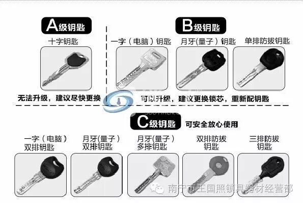 大家注意了,请看下图,对照一下您家的锁钥匙,属于哪个级别呢?