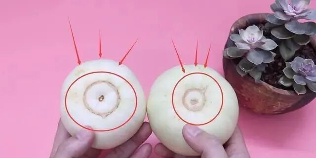 闻一瓜蒂的位置是否有香甜味,如果有说明这个瓜成熟度高、较甜;如果没有味道或者味道很淡,可能是这个瓜的果肉比较厚或者未成熟,口感不太好。