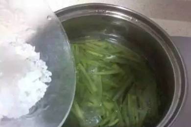 1. 西瓜皮去掉红色的瓜瓤,洗干净,切条备用。