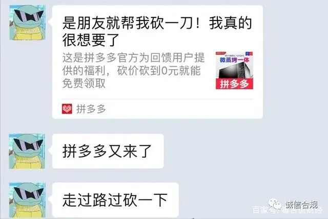 其次就是顾客,他们为了免费领商品,一直给自己的好友发消息,要求他们帮自己砍一刀,甚至陌生人都要求他们帮自己砍一刀。这时候,在忙的人就很烦躁,但是还不好意思说那些人,只能选择无视消息。