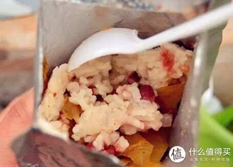 自热食品也是军粮中比较常见的一种,分为09式和13式单兵自热食品,味道有很多种,比如雪菜肉丁炒饭,什锦米饭,鸡丁炒饭等。特点就是体积小重量轻,便于携带,方便即食。如果你正好需要徒步旅行或者高强度户外训练,或者出国担心水土不服都可以带一些,尤其是在野外吃上一顿热饭,那是很幸福的事了~