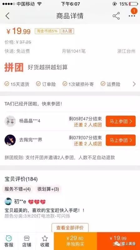 而如今淘宝上线【拼团】功能,既满足低价需求,还能享受到高品质的售后,用户会如何选择不言而喻。