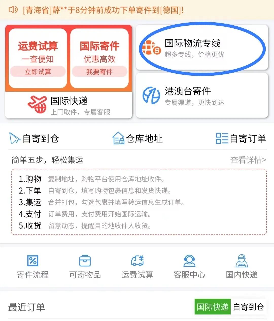 大家对国内寄送快递都比较熟悉,在手机上操作就可以了,很方便。👉国际快递转运集运也很方便,寄快递到国外就跟寄国内快递一样,5步轻松搞定。