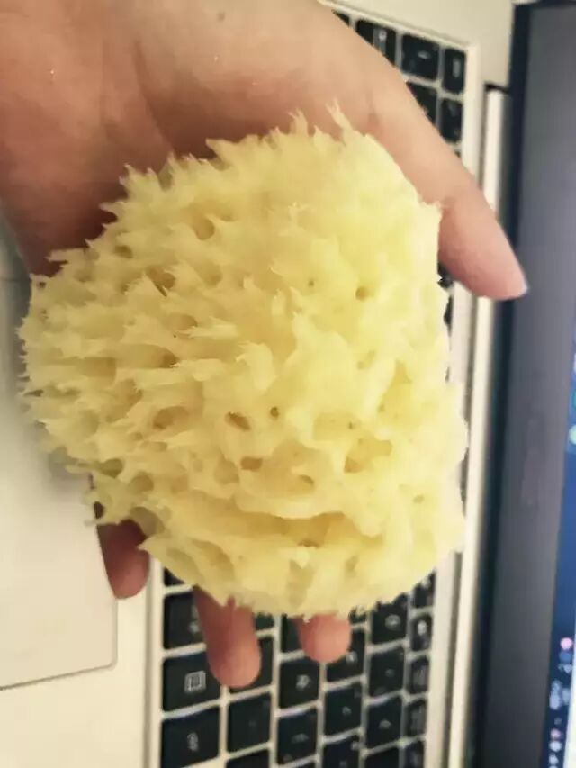 可能将来我会给它一个名字,叫做哈德海绵。这种海绵希腊产,菲律宾产,不少地方都产,但是正如名字一样,很硬,氮素,在你还没有摸到只能看图片的时候会觉得它很像丝绒海绵,但是real 硬啊,老外用来身体磨砂洗澡,千万不要用脸上,硌得慌。别看它的毛看起来细,但是里面组织结构很硬也紧密,跟木头差不多。