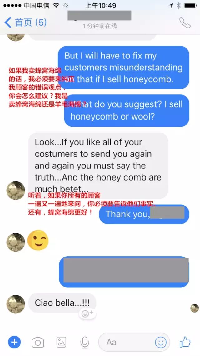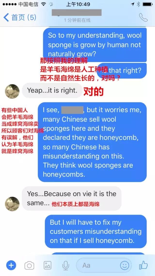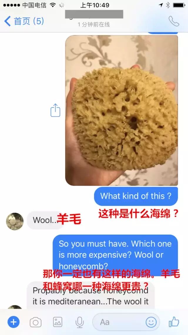 其实当他回复我第一句话的时候,我激动得飞起来,这证实了我的猜测,这并不是蜂窝海绵,是羊毛海绵。