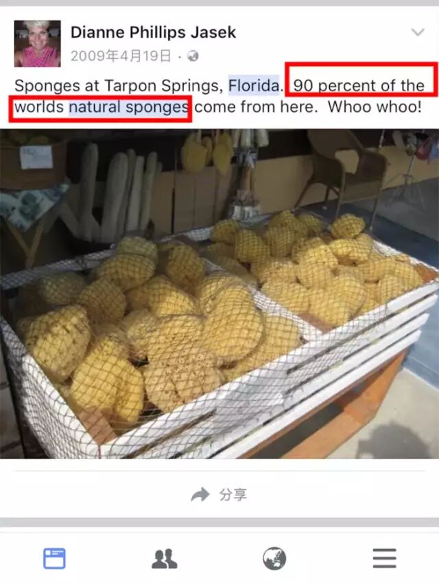 我之前也知道美国南部的Florida (佛罗里达州)也是盛产海绵的地方,那么羊毛海绵会不会出自于那里? 带着这个猜想,我查阅了羊毛海绵,进一步验证了我的想法,羊毛海绵确实是佛罗里达种植的速生海绵。