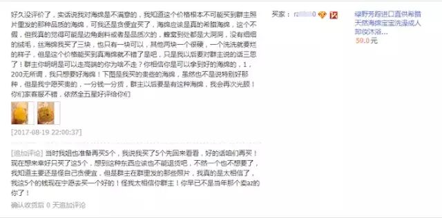 我有查看评论的习惯,那天我就看到一条关于海绵的评论,评论是这样的,截图给大家看一下。