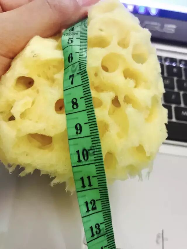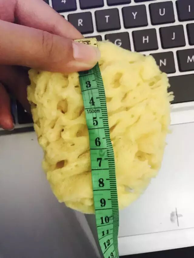 而且海绵从希腊发往中国时候是用机器压缩打包过的,不能像它正常的形状展开时候那样测量,本来11厘米的,压缩后只有9厘米。这个时候讲点公德心的都会泡了拧干再测量,而不是在压缩的状态下测,因为这样是很不准确的。
