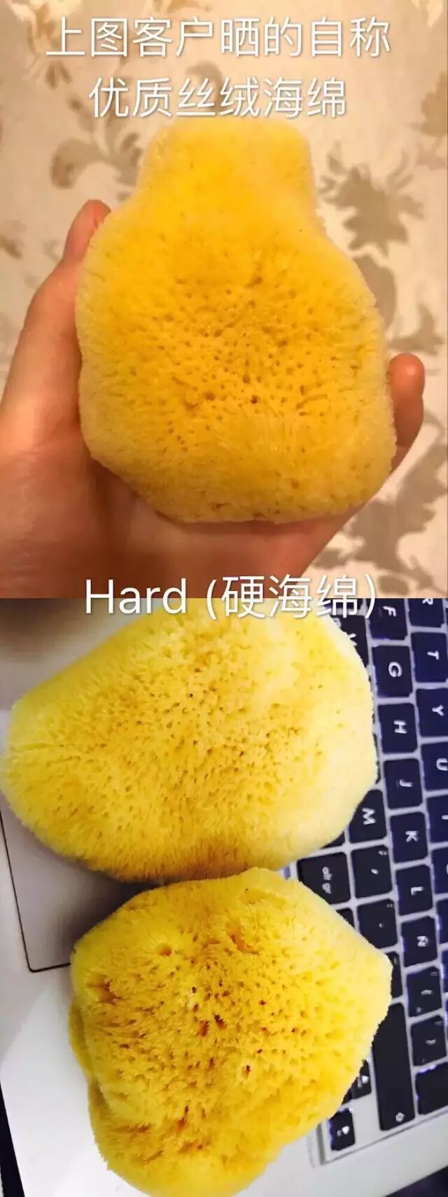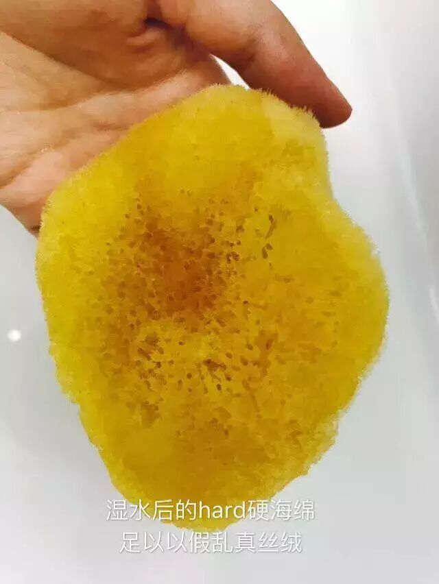 这位买家晒的左边的这个海绵也不是希腊所产的丝绒海绵,这个海绵叫做硬(hard)海绵,长得虽然和丝绒很相似,却比丝绒要硬很多。