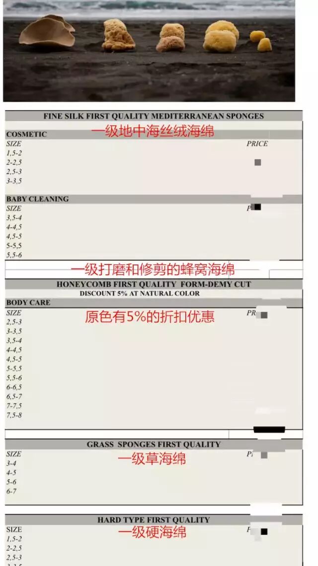 这是希腊某海绵厂给我的报价单,从这张图可以看出,希腊是不产羊毛海绵的,希腊所产的海绵都是一级海绵。
