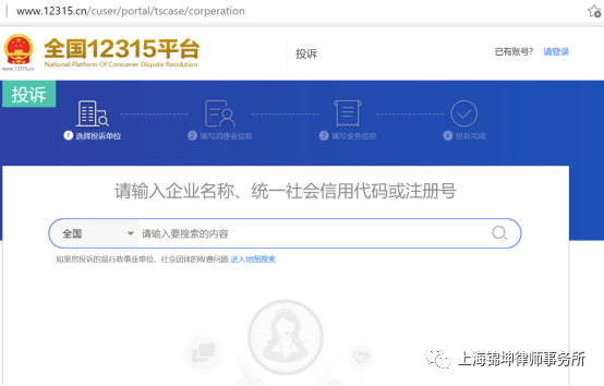 选择商家当地的执法机构,并且输入准确的商家名称和信息,如商家所在地是上海市浦东新区,即选择上海市浦东新区市场监督管理局: