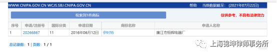 (3)通过商品上的商标查询到生产厂家,很多厂家为了提供知名度和识别来源,都在实物中标注了商标,通过对商标注册信息的查询,我们可以找到生产厂家。在拼多多随意找了一个电饭煲的评价截图,显示商标为伊时特,通过百度,我们可以知道电饭煲是商标分类的第11类,在商标局官网(http://wcjs.sbj.cnipa.gov.cn/)用伊时特在第11类上查询,即可显示生产厂家。