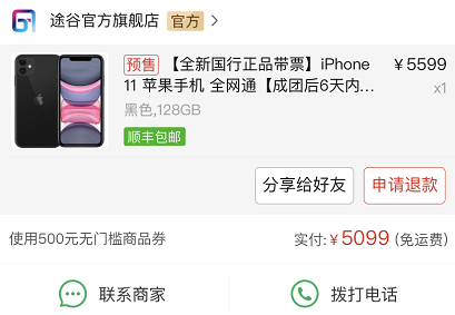 仔细一看,iphone11 128G 的售价竟然比其它电商平台的低价还要再便宜500+...玩这么大吗?我信你个鬼!八成是有猫腻。