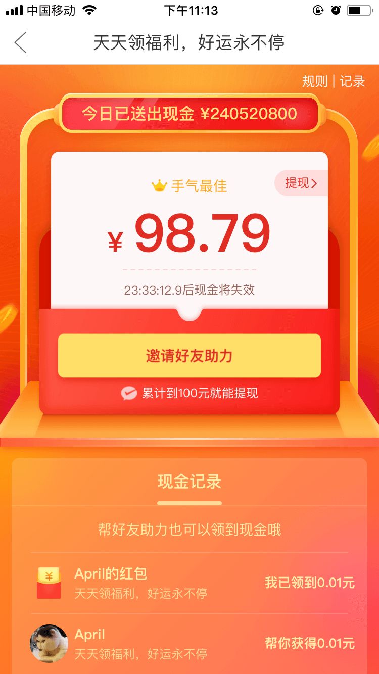 拼多多的100元现金打款活动也让不少人蠢蠢欲动:(甚至有人不惜在微信群里发微信红包,求别人助力)