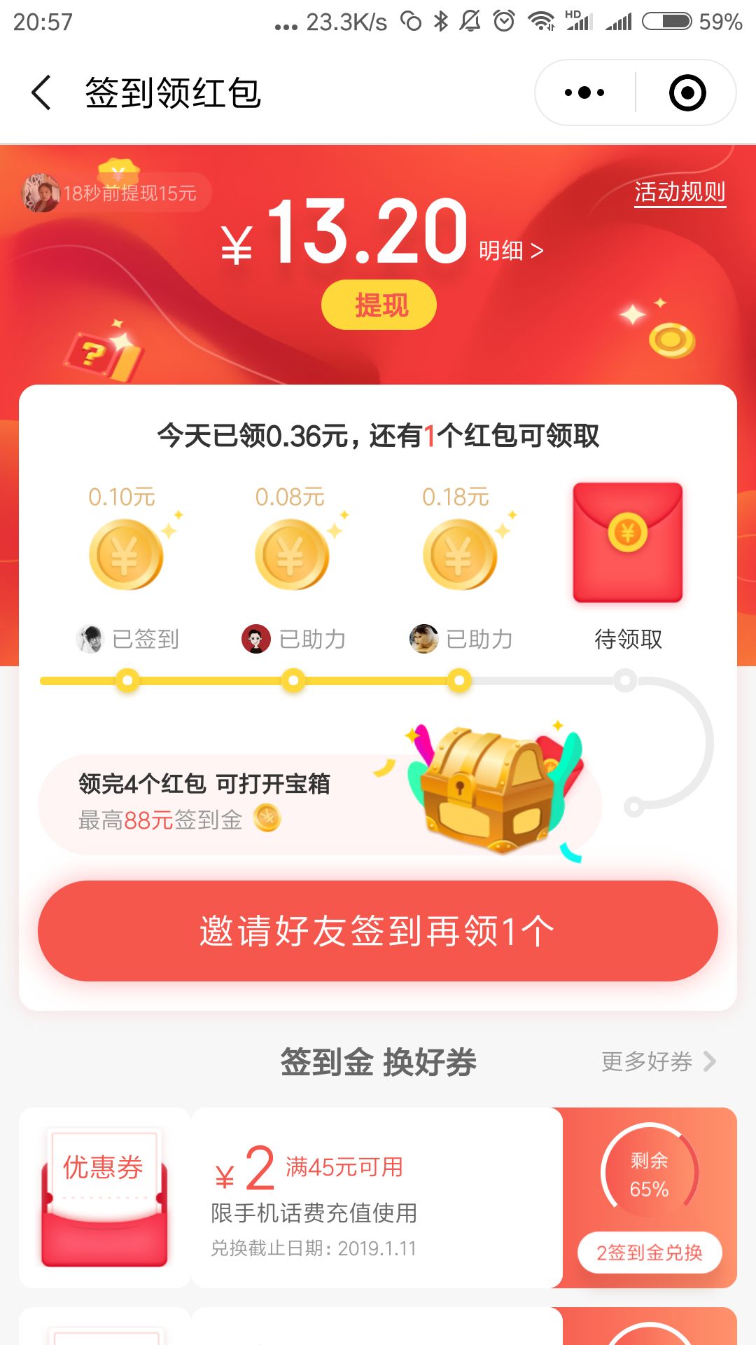 每年的618、双11期间,电商公司会推出各种SNS类的红包活动,需要邀请好友助力,才能获得更多的奖励。类似于下面这种签到助力活动: