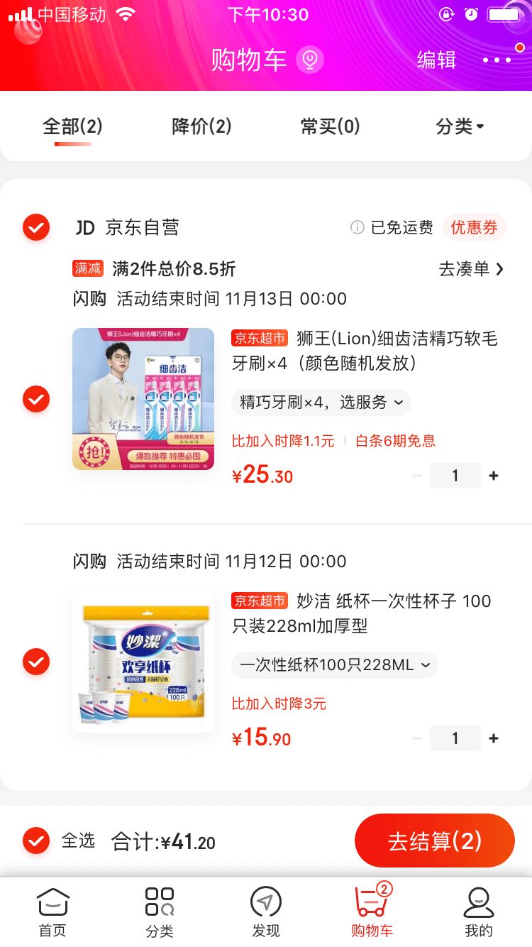 你有没有发现一个现象?你在前一段时间加入购物车但是还没下单的商品,今天打开购物车一看,降价了: