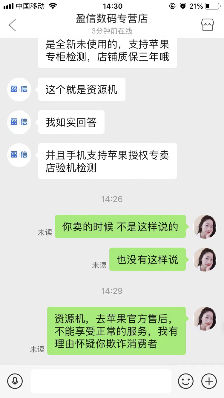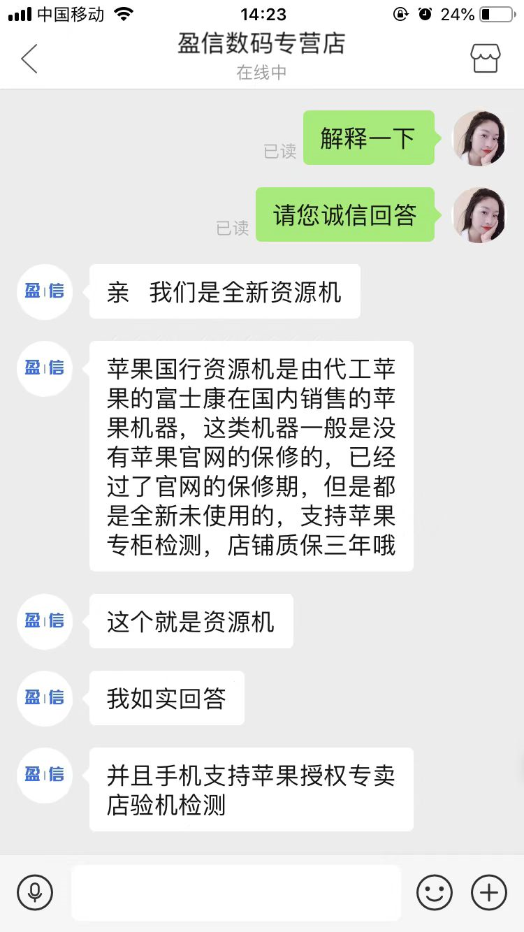 这时候商家的回答,算得上特么的牛逼!重点几个字:全新资源机!