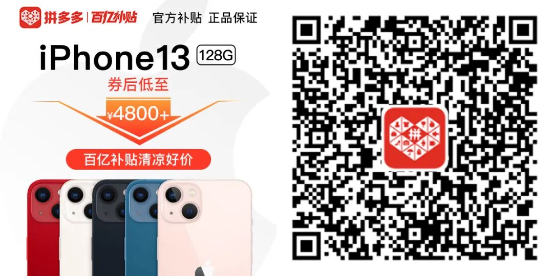 而在拼多多百亿补贴夏季大促期间,iPhone 13券前低至4800+元起,而iPhone13Pro和iPhone13Pro Max券前也只要6949和8009元,优惠可谓十分丰厚了!