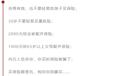 昨天无意中又刷到一个自称保险专家普及保险知识的抖音,上来第一句话就把我这20多年的老保险听懵圈了。她的第一句话就是:保险都是骗人的!配的字幕的字那叫一个大啊,生怕别人没听清。
