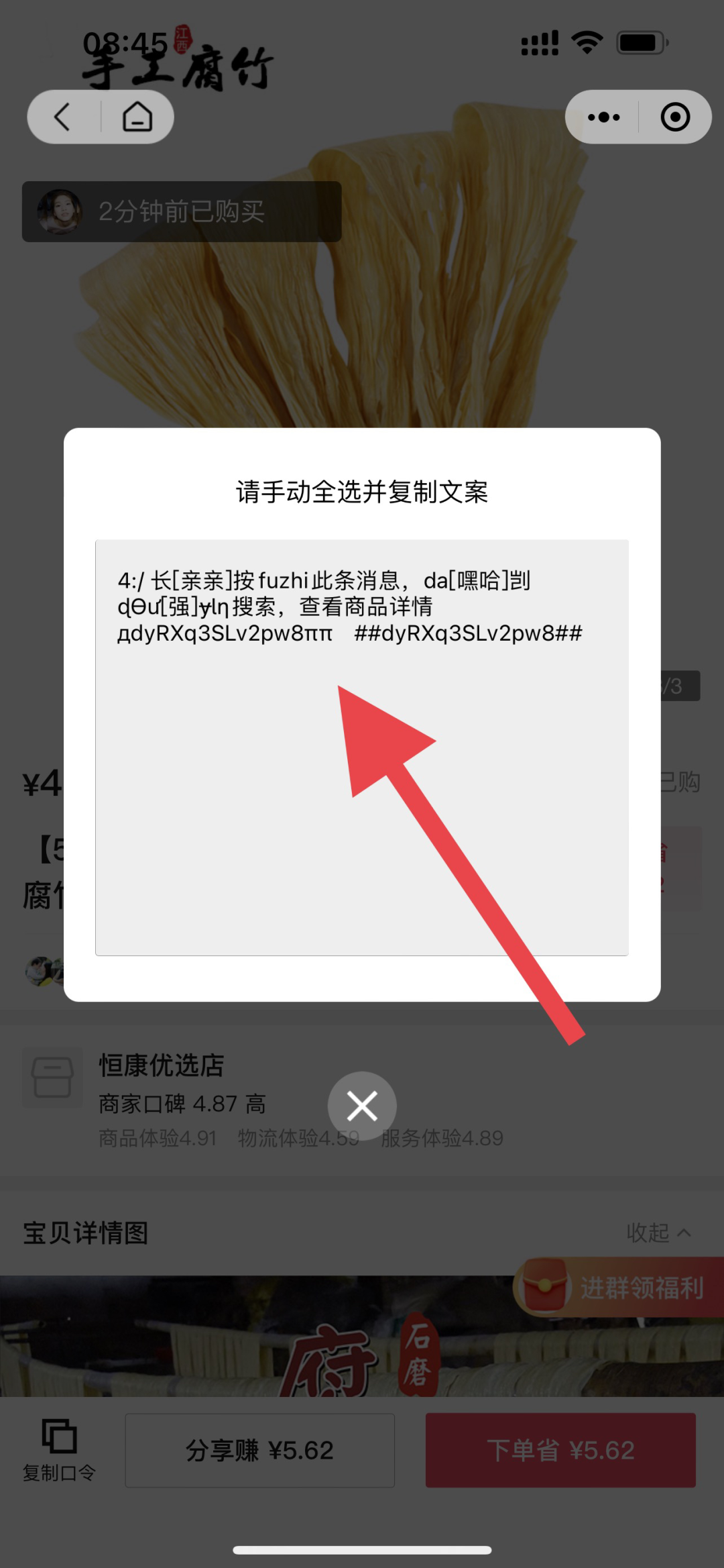 复制口令给朋友也是一种分享的方式,同样可以下单购买。
