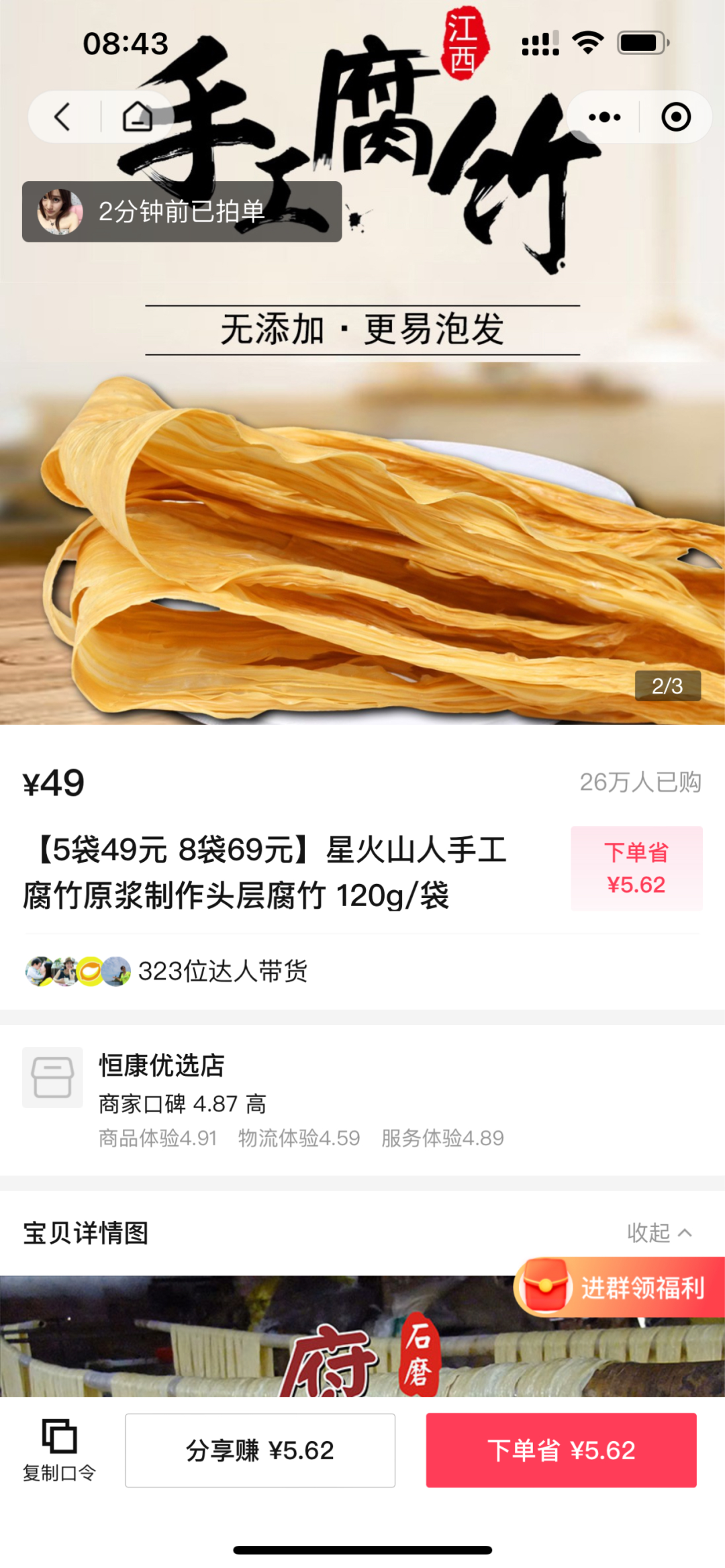 接着打开抖音,会自动跳出这个产品,就是刚刚要找的那个腐竹。