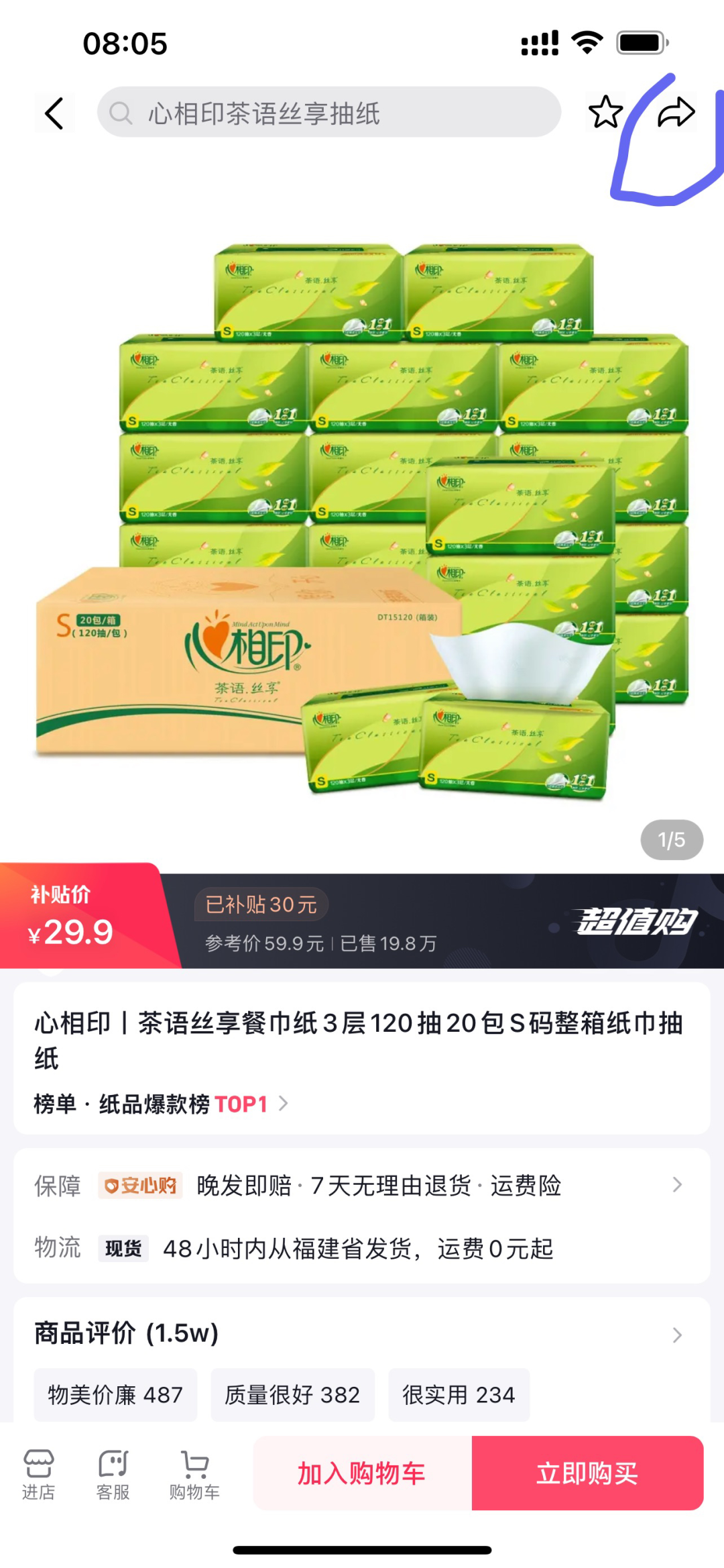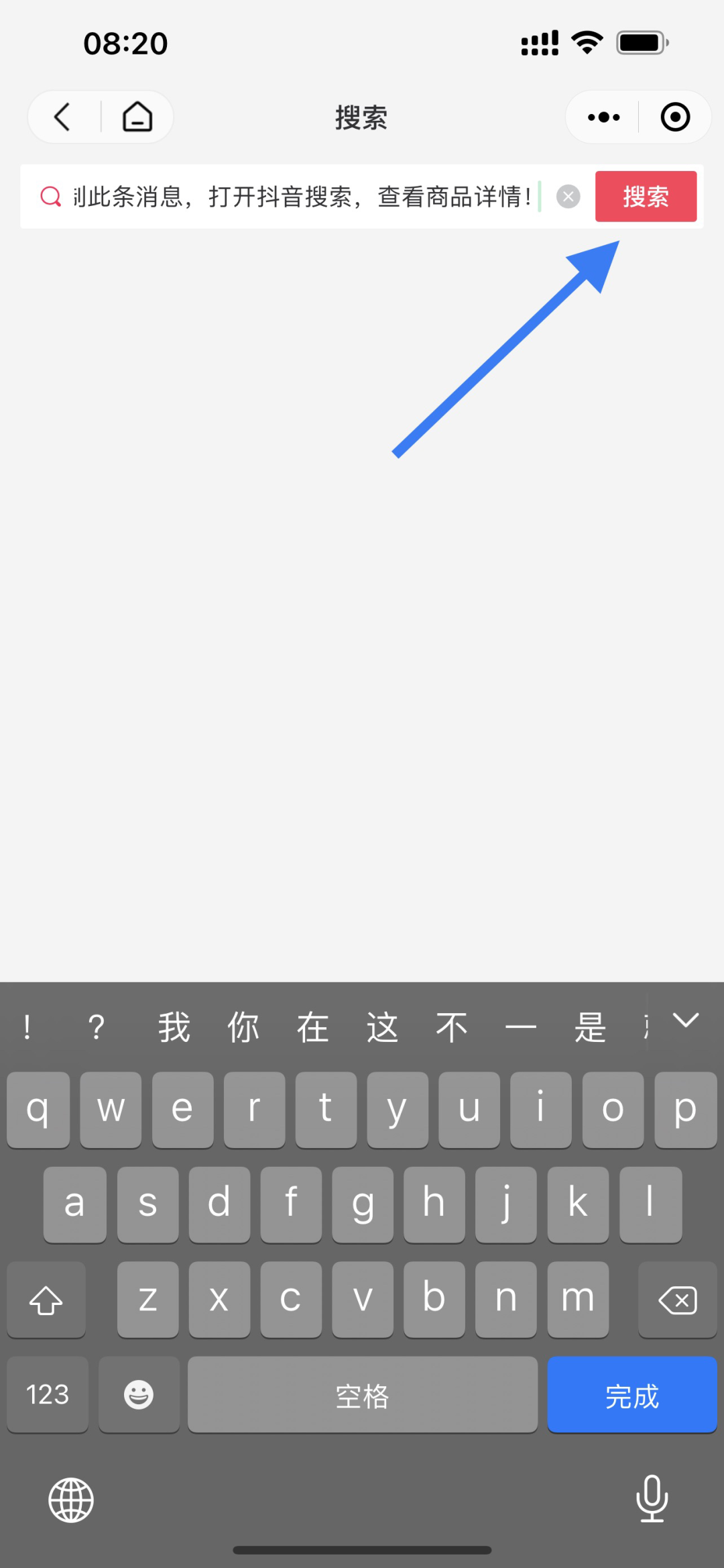 打开抖音商城,随便找一个产品,点击右上角的箭头符号
