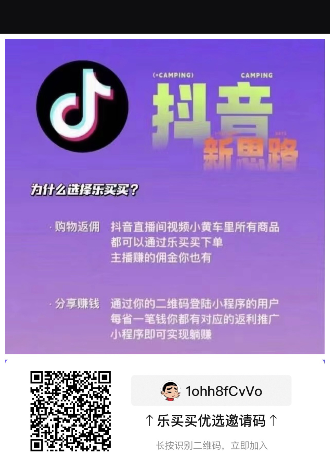 你会在抖音上买东西吗?如果会抖音购物也有返利啦,乐买买9月28号刚出来扫二维码免费注册它可以自用省钱,分享赚钱!