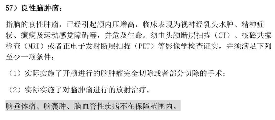 如果涉及到这种脑肿瘤的话,也是属于重疾的保障范畴,它的条款如下: