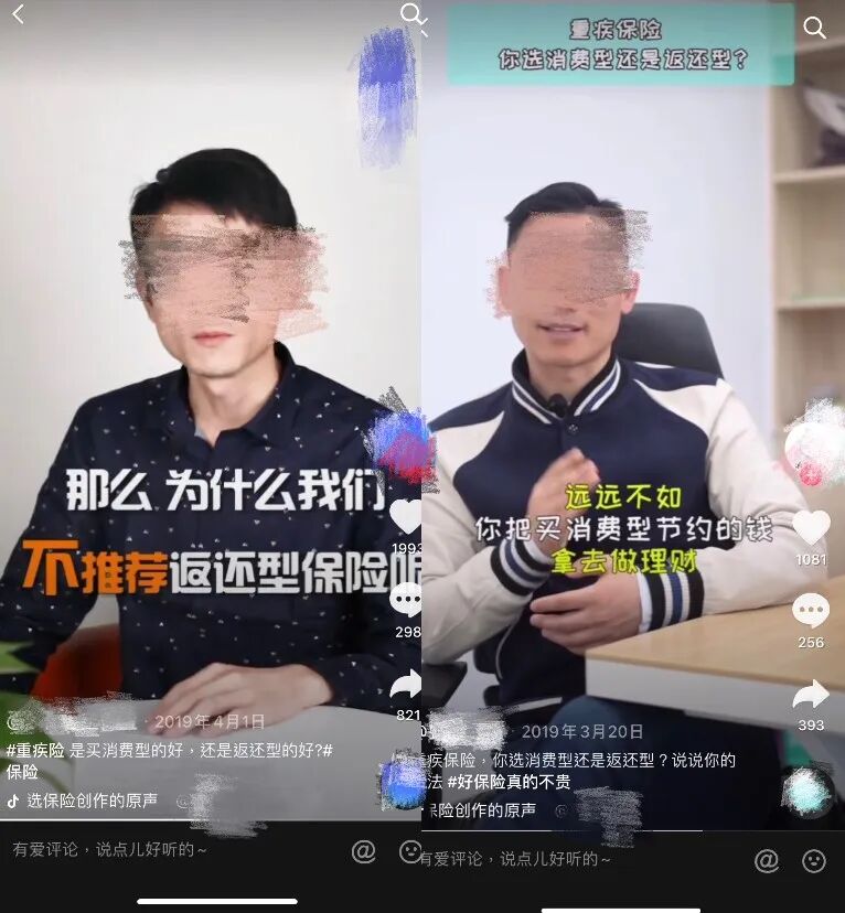 不过最近和同事开会时也发现了一个现象,就是很多抖音平台为了追求流量和生意,也会出现一些误导的现象,让很多已经配置了保障的客户进行退保等充满着十分巨大风险的行为。
