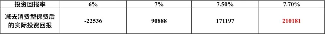 你会发现,如果年化收益率达到已经是比较高的6%的时候,都会发生了亏损,只有年化收益率能够稳定地安全地达到年化收益率7.7%的时候,才基本能持平。