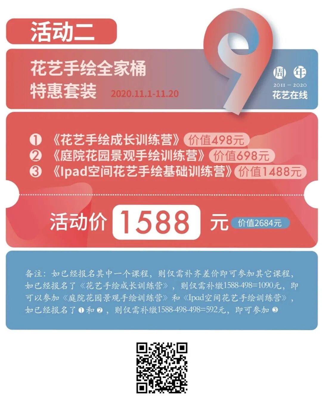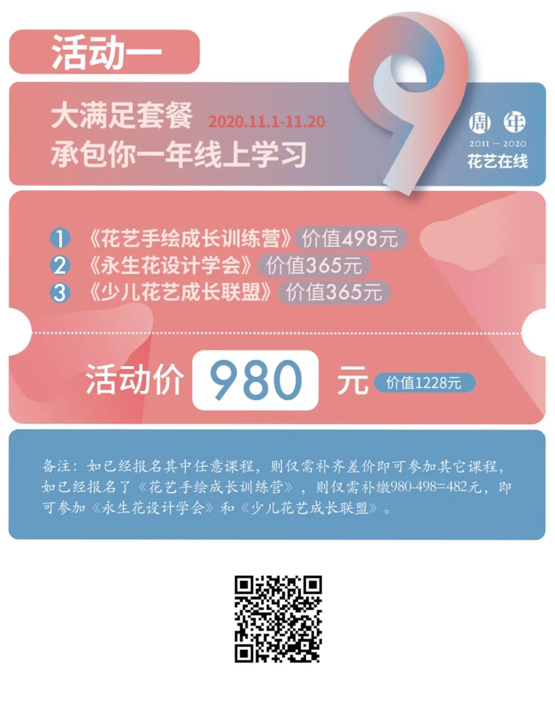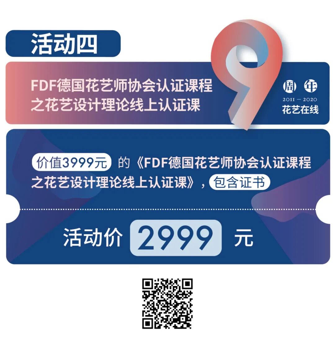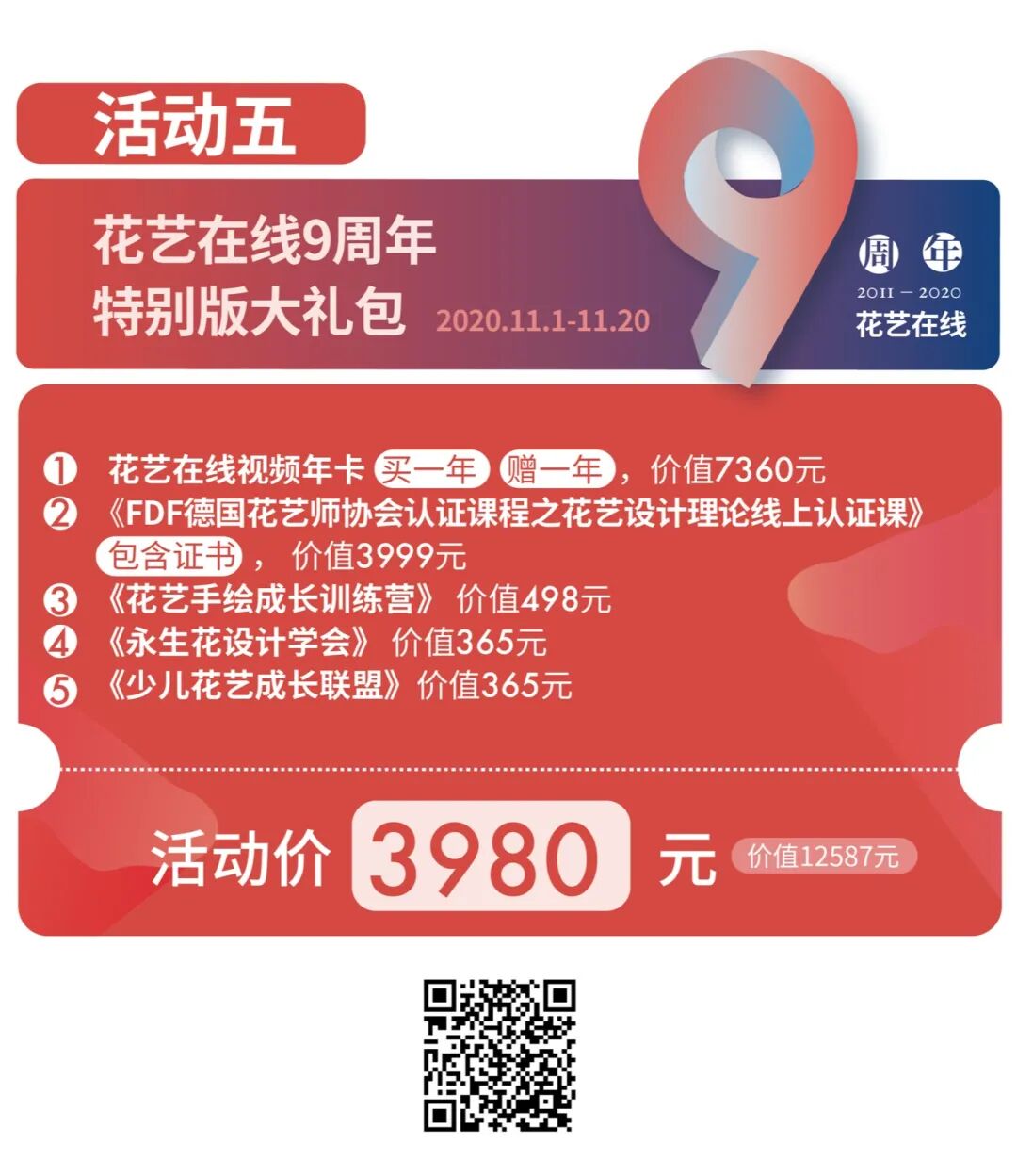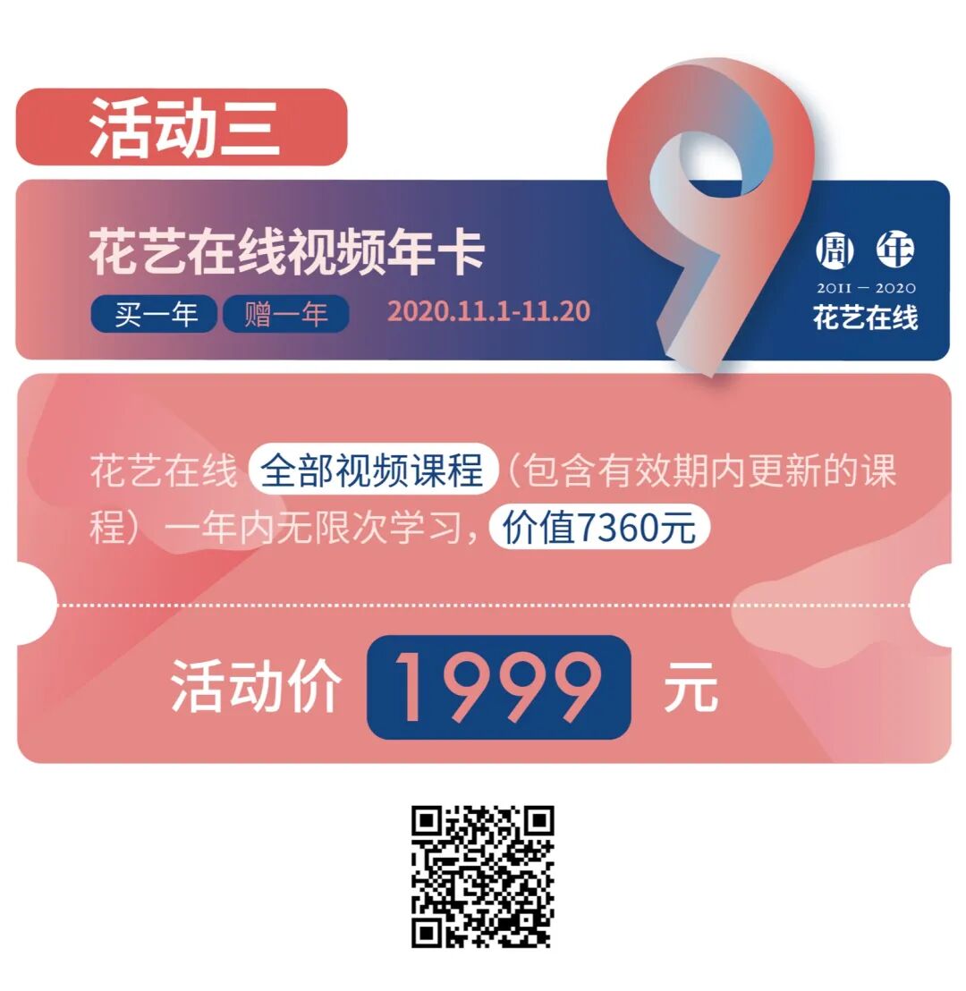 花艺在线9周年庆之际,我们推出一系列真情回馈特别活动,不用抢、不考智商,全是好课程,全是超值价!