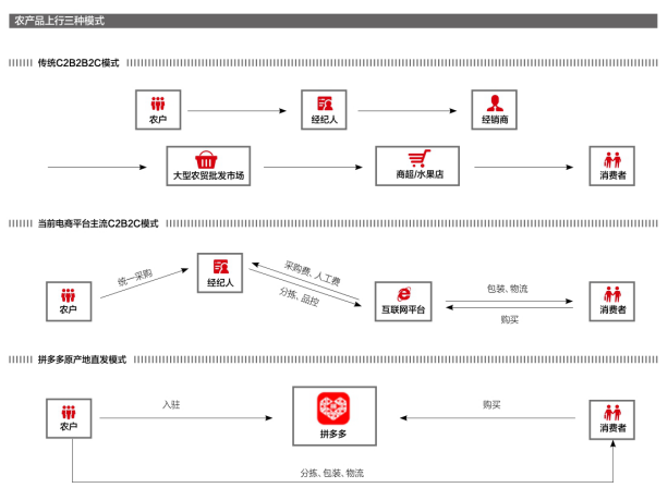 第三种模式就是以拼多多为代表的农产品原产地直发模式。
