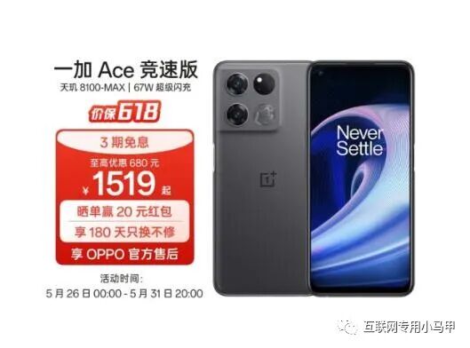 一加Ace竞速版屏幕是一块6.59英寸LCD材质1080P直面屏,支持最高120Hz高刷,6挡智能变速,根据场景随时切换,还支持DC调光,既无拖影,又护眼,好屏;后置6400万像素三摄,和OPPO K10是同款主摄,成像水平不差;5000mAh大容量电池+67w快充,如今618期间,12+256内存版本已经跌至1519元,可以闭眼入。