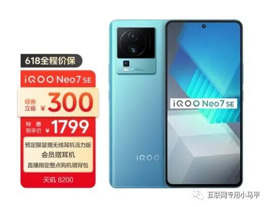 iQOO Neo7 SE也来凑热闹了,曾今12+256内存发布价是2499,现在因为新品Neo8系列和618活动的到来,迎来双重降价力度,直接1799元就能拿下;Neo7 SE搭载天玑8200处理器,安兔兔跑分达到了91w,性能比上一代Neo6 SE强了许多,外加全覆盖立体散热系统,能给大家带来超棒的游戏体验;