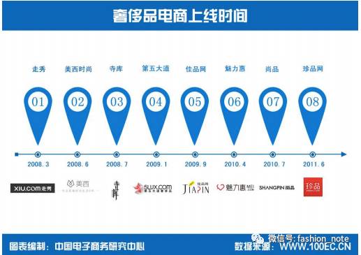 中国大部分本土的奢侈品电商都是2008年-2011年期间上线的,具体可以看下图: