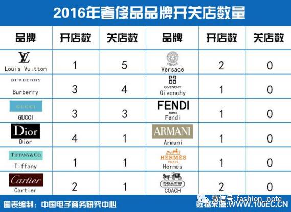 总体来说,奢侈品的实体店,受电商的冲击是相对比较小的,所以大牌们的大趋势是继续开店,但与此同时也在关闭业绩不理想的店面。2016年,奢侈品大牌们总共开了24家店,关了15家。