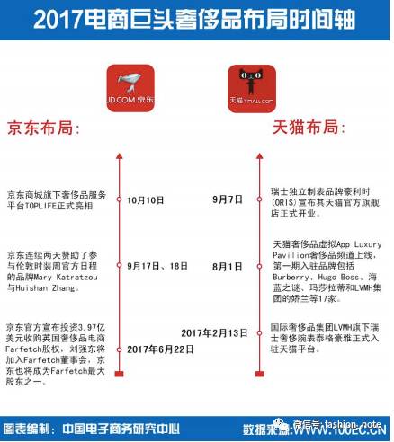 下面这张图展现了猫狗大战(猫=天猫,狗=京东),马云爸爸和刘强东叔叔都是怎么抢奢侈品牌子的: