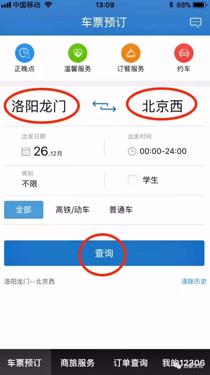 1、打开12306手机客户端,输入始发站和到达站,然后点击查询。