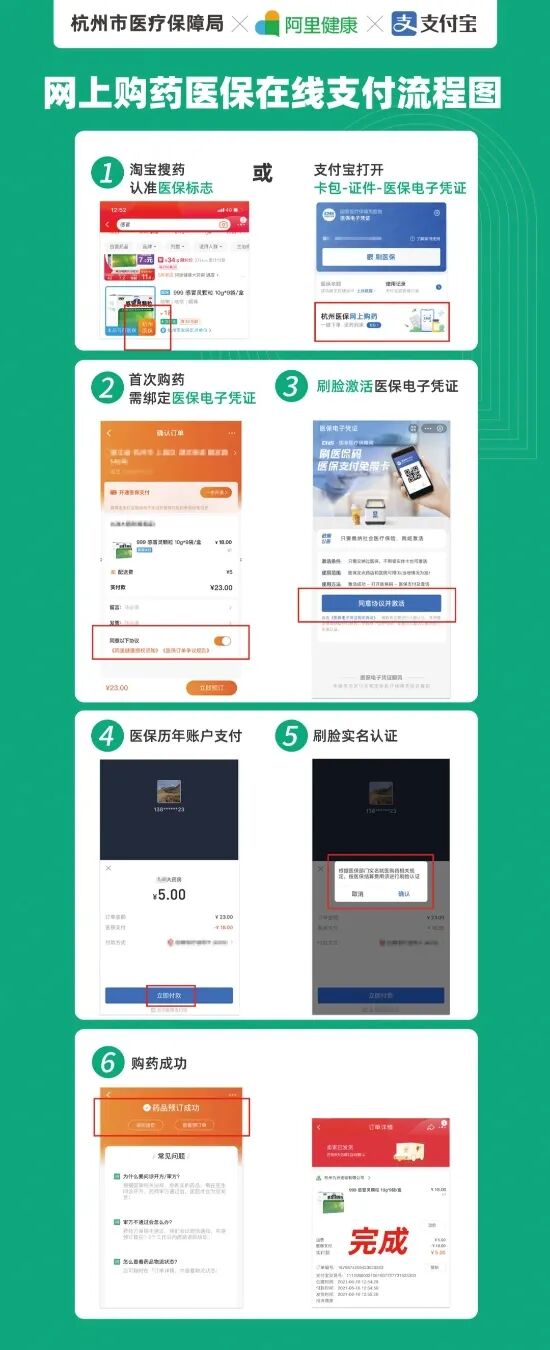 此前,杭州市参保人员必须持实体医保卡或电子医保卡,到定点医院或药店才能刷医保买药。如今有购药需求的杭州参保人员,只需打开手机,通过淘宝平台搜索药品或者症状,选择有杭州医保标识的药店下单,在线完成药品选购,刷脸认证支付后,即可完成医保在线购药结算全流程。
