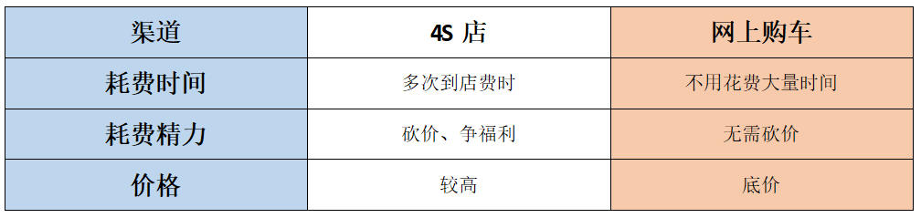 除了价格更低,网上买车还能更省时、更省力,免去频繁跑去4S店看车、对比的皮肉之苦,以及不必和销售斗智斗勇。