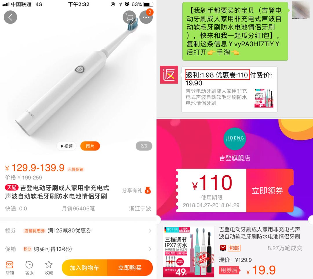 (机器人会反馈回来一个有优惠券的口令信息,还是同一个商家,同一个商品)
