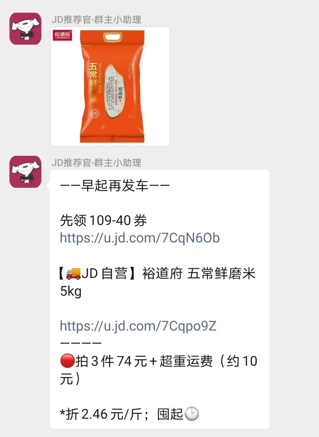 然后,自从我进了京东内购群,就爱上了群里买米。