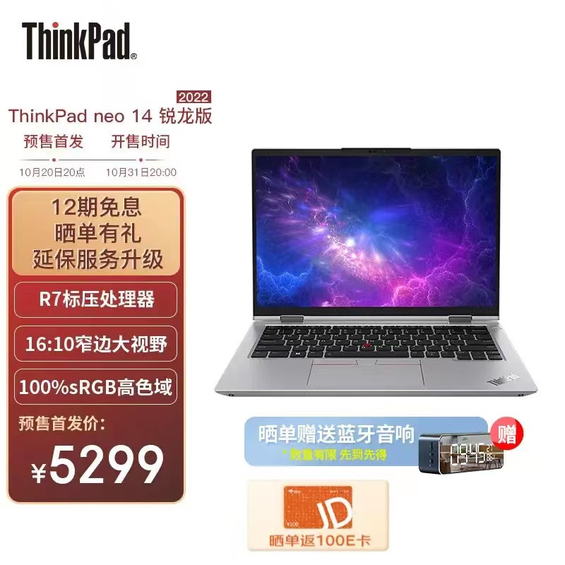 14英寸笔记本电脑,100元定金,31日支付尾款券后5299元,晒单饭100元E卡后到手5199元。